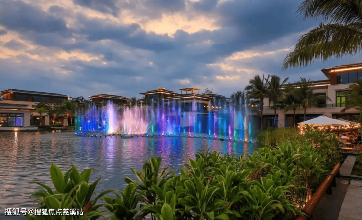 自然景观:背靠南山,面朝崖州湾,绿化率超40%,拥有1.1万㎡热带台地园林、700㎡度假泳池、6大主题花园。