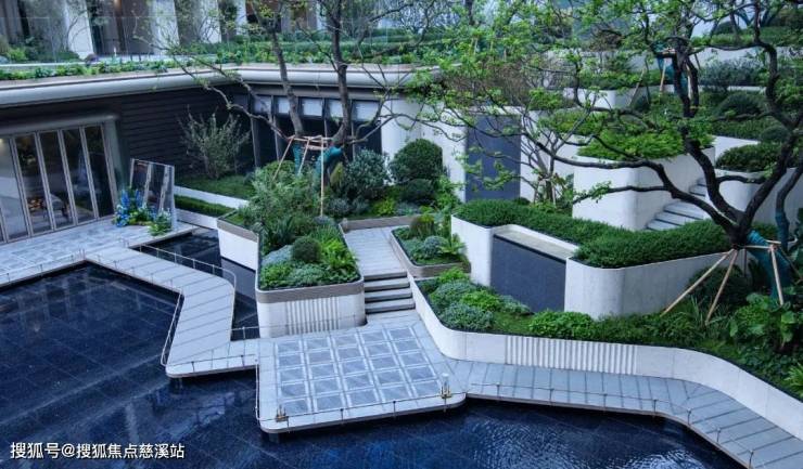 如,对标上海静安豪宅的围合式中央花园