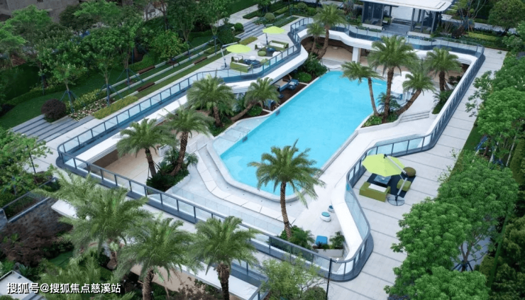 打造无边界泳池+健身房+台地花园+山体公园,以泳池为核心的都会度假“泳池体