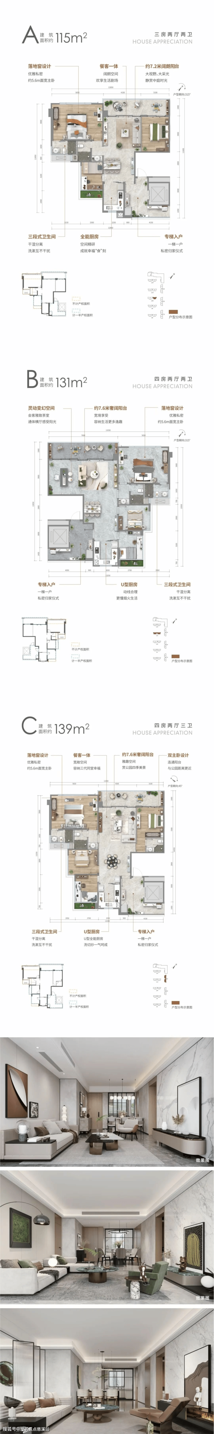 A户型: 约115㎡三房两厅两卫