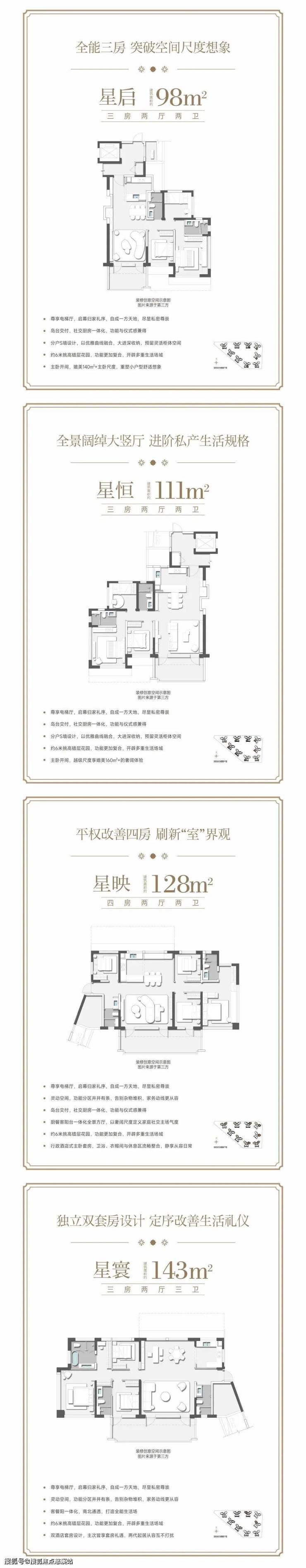 143㎡:奢阔四房,宽境横厅+双阳台,双套间设计,兼顾私密与排场