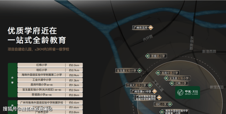 附近有公办小学海珠区金碧第一小学西校区和海珠区石溪劬劳小学,两所小学对口初中分别在第五组和第七组。