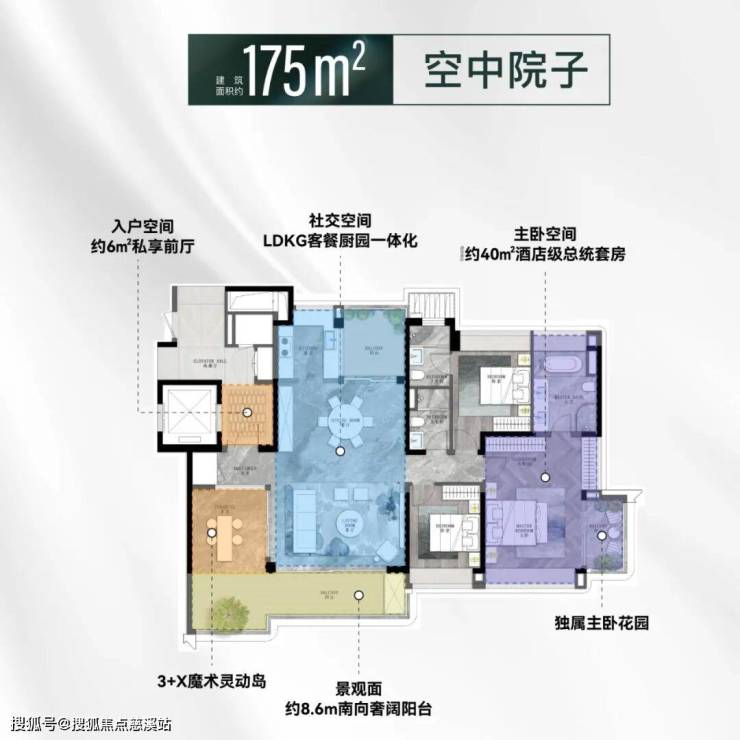 建发缦云183㎡户型秉承了建发缦云系列产品的优越基因,南向面宽约18米,配备南向约9.2米景观大阳台,双套房+品牌装修,空间布局通透,动静分离。