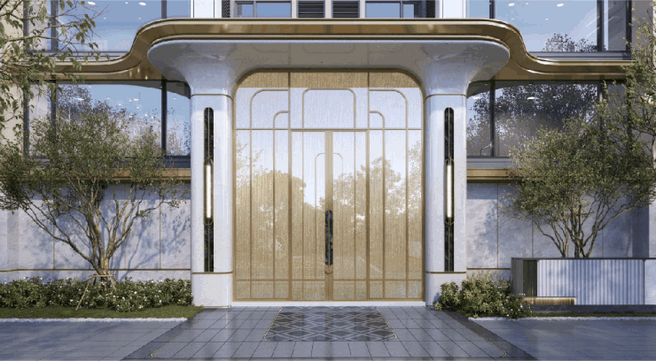 江湾道汲取深圳香格里拉酒店等高端酒店的设计灵感,打造28 米海派尊荣主入口、约6.7米挑高酒店式门庭,艺术氛围扑面而来,让每次归家皆是一次充满仪式感的旅程。