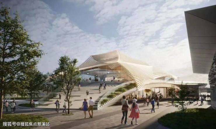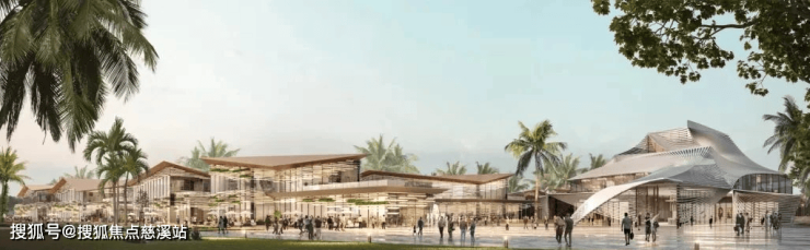 项目由国际设计大师隈研吾操刀设计,建筑的整体灵感源于三亚海洋文化中常见的灵动船帆,三角形的坡屋面采用极具现代感的金属材料组成如传统屋顶一般的长条形材质结构,层层交叠,似是即将扬帆起航,衍生出层层浪花的唯美想象,形成独属于海南的区域名片。