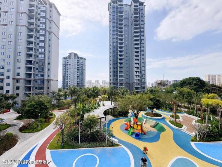 然后看景观,远眺是绵延群山,下楼即入约1.1万㎡的热带风情园林,不仅足够大,还嵌入了全龄段休闲娱乐空间。