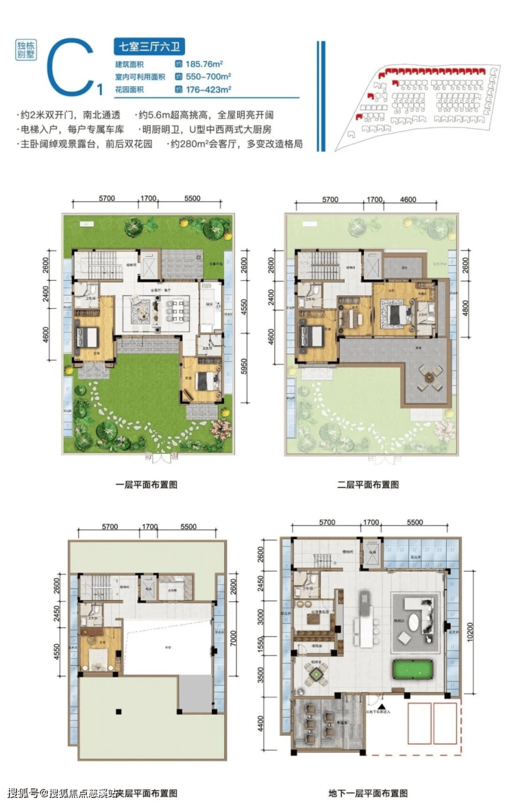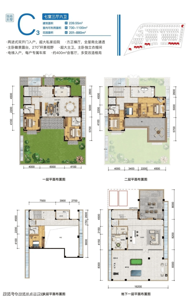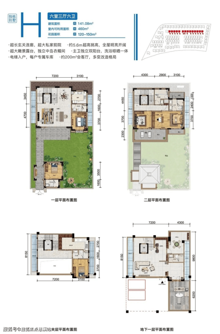 平墅:约115—168㎡ 3.9米层高现房平墅,南北双露台