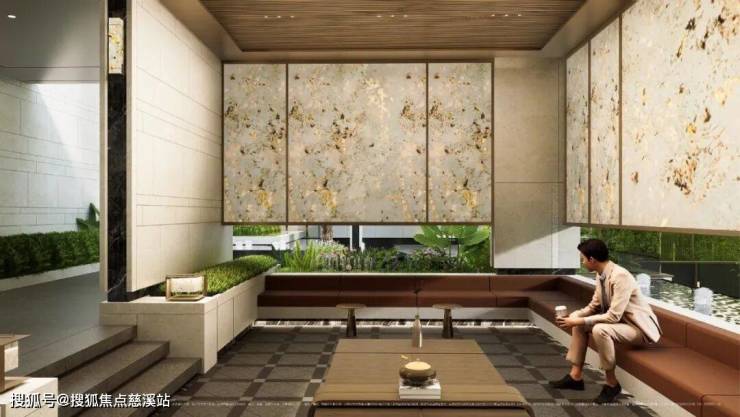 源鉴明代画家邹典的《金陵胜景图》,打造一轴七境画卷,山光云影、水韵掠影、云阁深林、层林叠翠、亭台觅趣、石涧泉音、樾林草栖设计,风景重重迭进。约300㎡江南水乡下沉庭院,乌桕、乌篷船、红枫相得益彰。