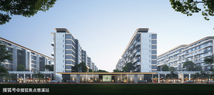 公建风立面,大量玻璃栏板+铝板+金属线条勾勒,运用曲面弧形转角手法,颠覆了传统建筑直线与棱角的生硬形象。
