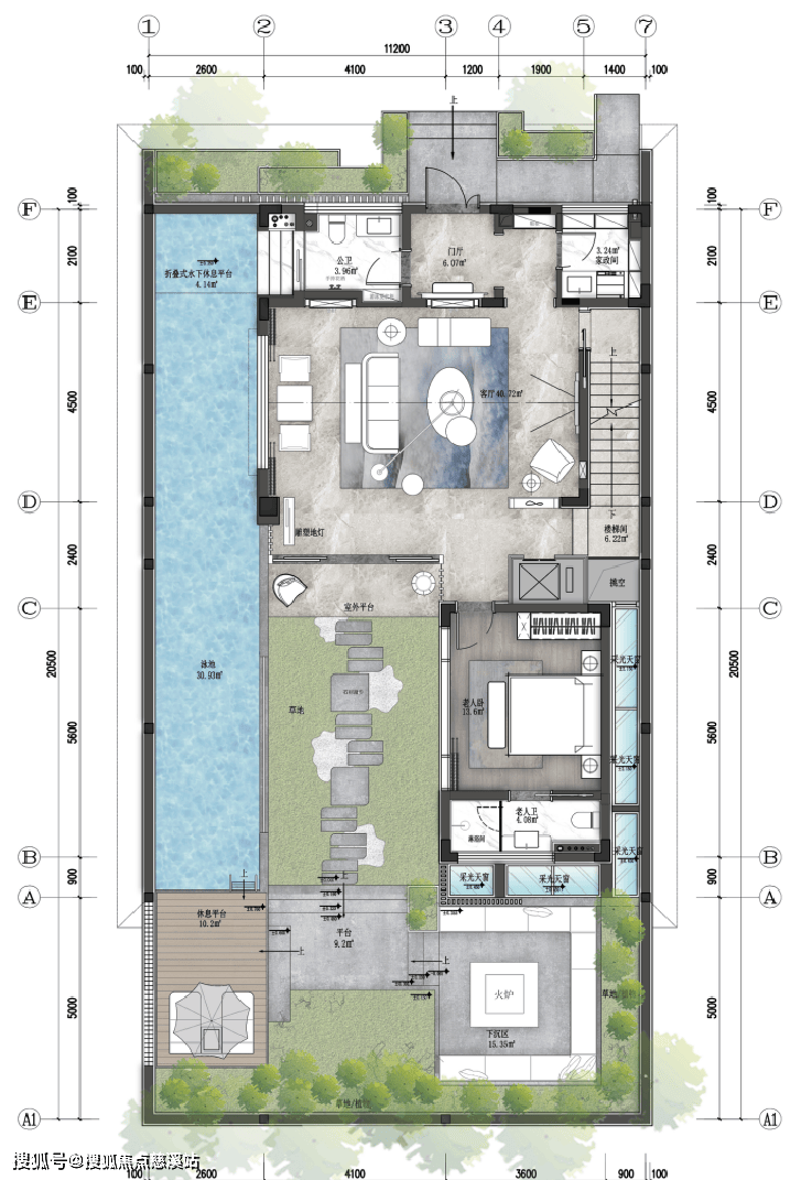 度假院墅产权面积:约 128㎡,实得面积:约425㎡