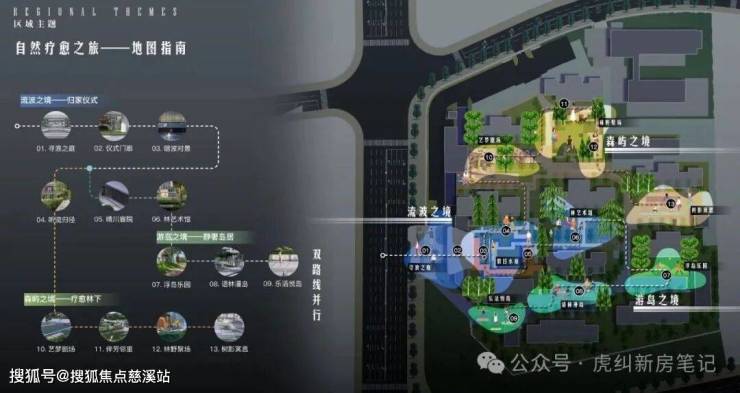 外临水岸,内藏森屿,社区规划流波、游岛、森屿三大主题意境,一轴七园复合园林景观。让社区成为集艺术、健康、疗愈于一身的多功能生活社交空间。