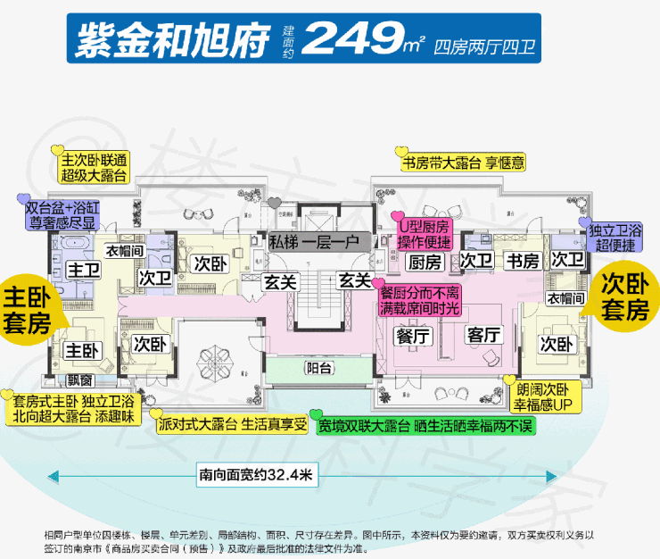 双主卧套房独立分区,充分保障私密感。4个超大露台累计约100㎡不计入产权,南京炸裂级的薅顶豪羊毛机会,就在紫金和旭府~