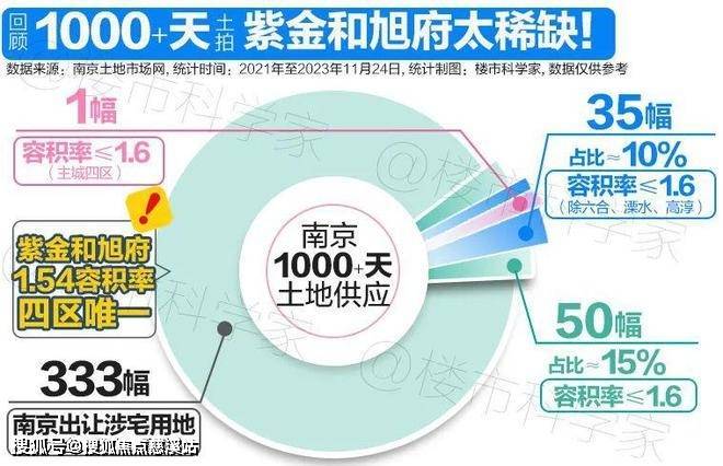 据统计,南京累计出让的约333幅涉宅用地,其中容积率低于1.6的占比约15%,而地处主城4区的,1000+天的时间里仅仅出了紫金和旭府这么一块!容积率之低,仅1.54,令人艳羡。