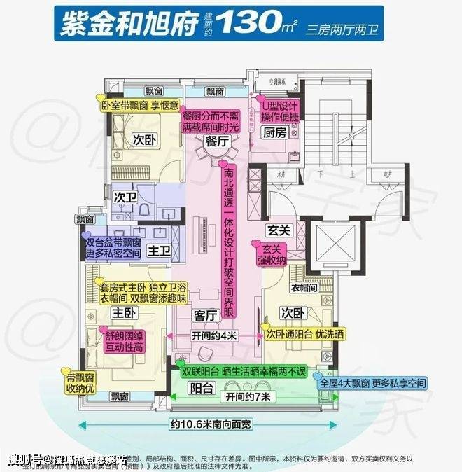 约10.6米南向面宽+约7米双联阳台,低总价享受大尺度。