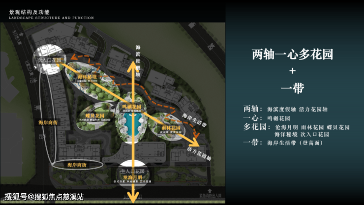 景观打造双轴一心多花园一带的景观结构,归家途中沿着海滨度假轴,从轴线式花园归家园路进入酒店式入口门庭,从沧海月明的仪式感,到鸣樾花园的轻奢度假感,再到海岸花园(登高面)的松弛与自由。从蝶贝花园的纯净感,再到海岸商街的喧嚣感。从室内到室外,从宁静到喧嚣,打造一处高端定制的生活居所。