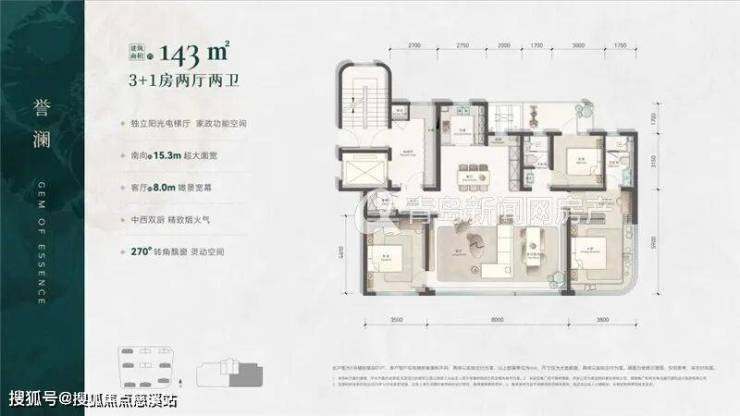 青特璟誉以建面约128-230㎡的大平层产品为主打,主力约143㎡户型占比超50%。该户型实现了“LDKB 一体化”设计,将客厅、餐厅、厨房和阳台有机融合;“3+1房”设计,灵活多变;面宽约8米客厅、主卧270°转角飘窗运用,进一步拓宽了视野。