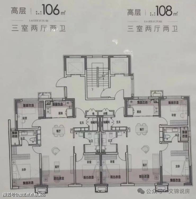 高层产品为 106 平与 108 平的 “三叶草” 户型,这种户型设计紧凑实用,能在有限的空间里实现三居室的功能,而且各个房间的独立性和采光性都很不错,非常适合刚需家庭。