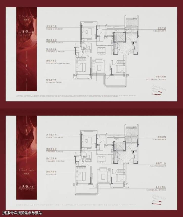 建面约108㎡户型,多功能三房产品,通过四代住宅创新设计,打造出超越面积限制的阔绰空间感。