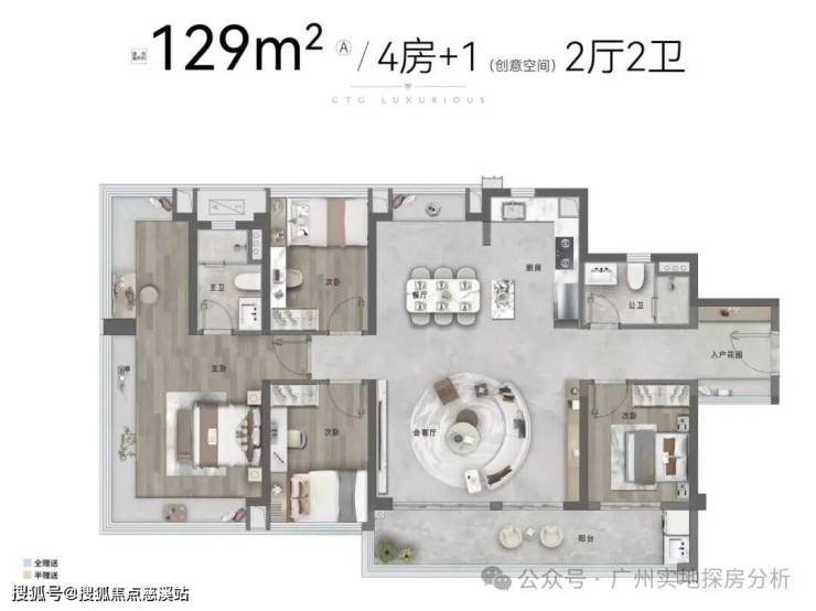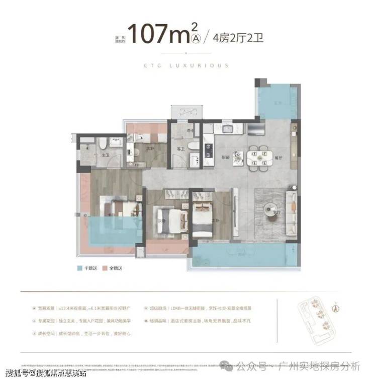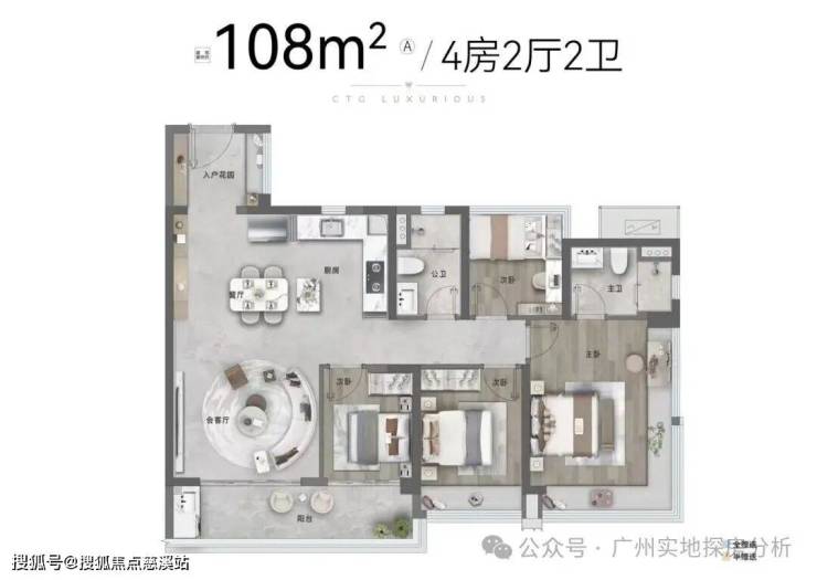 108方四房两厅两卫,四开间朝南,全屋高配置交付,6米多大阳台。