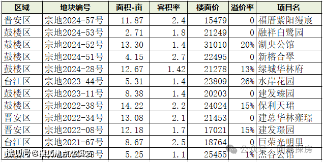 分析:去年土拍下半场,随着保建国集体缺席,鼓台地块溢价率也有所下降,其中袖珍地块被小型民企拿下。