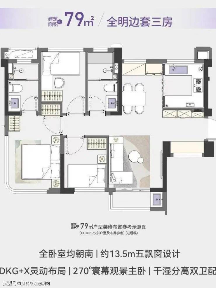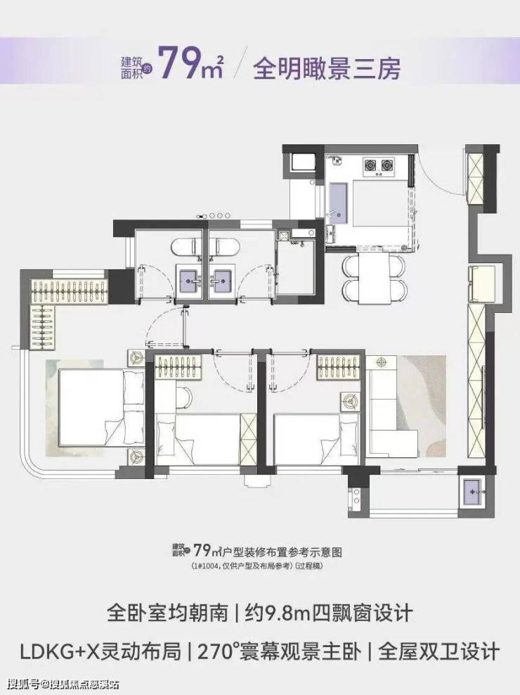 高层面积62㎡两房、79㎡三房两卫