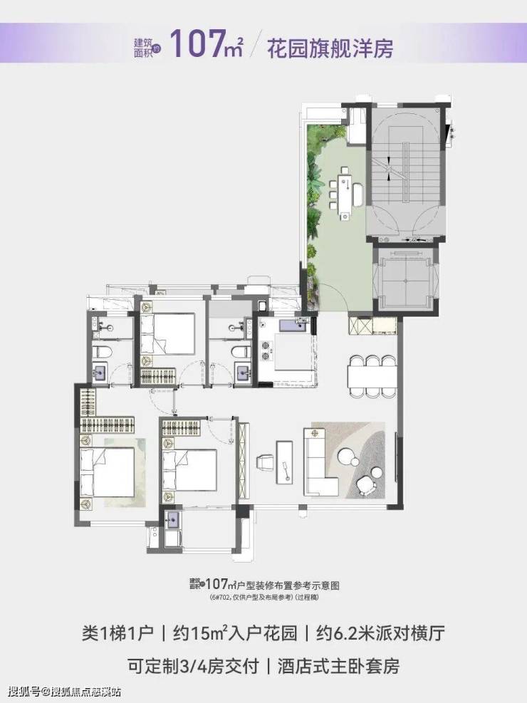 ★ 洋房: 私梯入户,户户超14㎡空中花园(封包交付,可做室内第五房),其中2-4F双空中花园