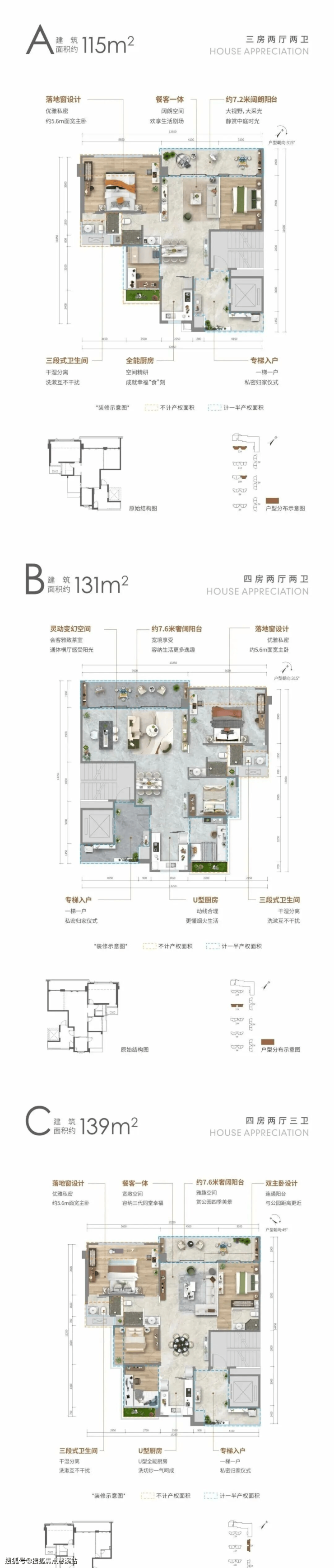A户型: 约115㎡三房两厅两卫