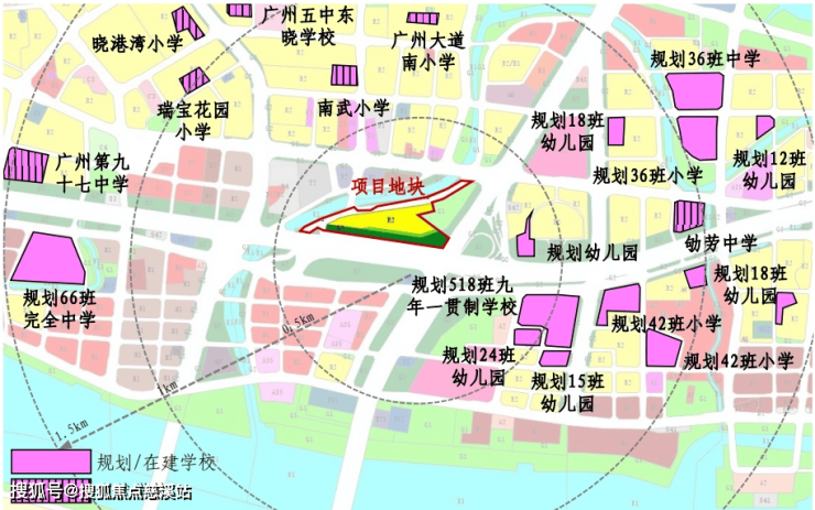 地块本身形状不算规则,像个剪刀叉,6.7万平的土地面积,只有3万平可用于建设,剩余1.7万平道路用地,2万平绿地用地,坊称海珠版“兰亭盛荟”