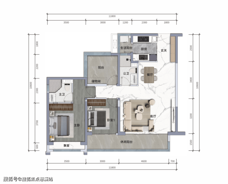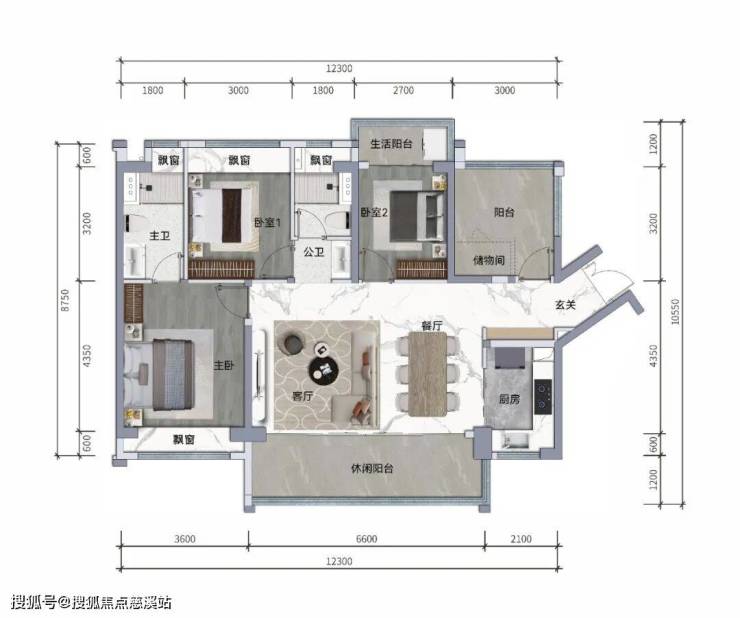 118㎡三房两卫:,客厅面宽与景观阳台尺度升级,双面落地窗阳改房