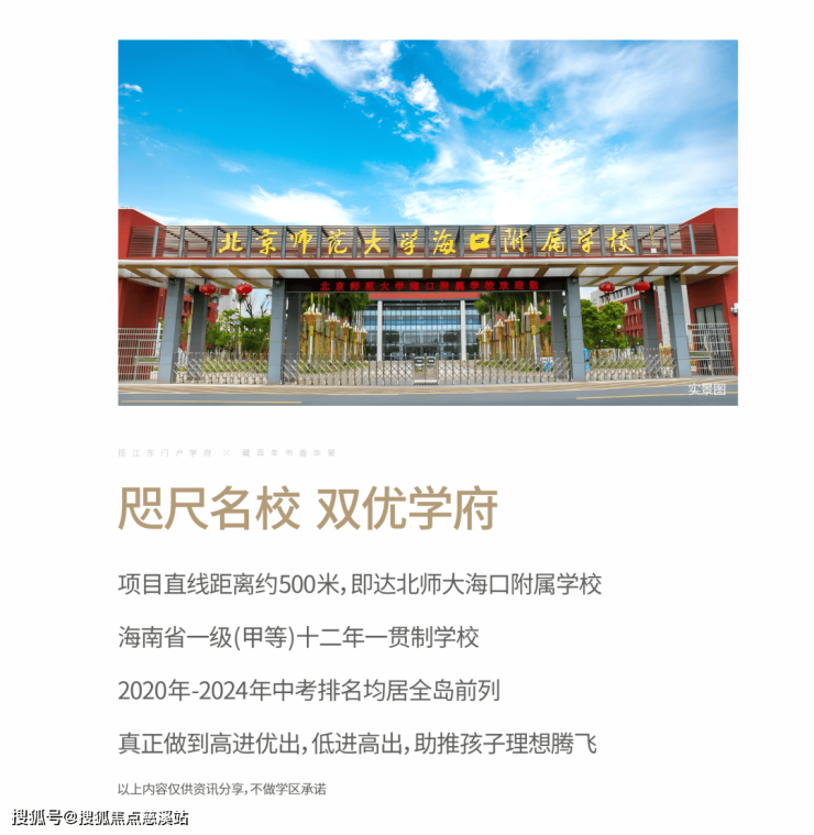 学区:北师大海口附属学校(距项目约500米,划片学区),自建幼儿园