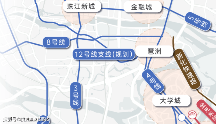 东门连接广医南路距离地铁站可以控制在800米左右。乘坐4号线1站可达大学城、3站万博、4站琶洲、5站金融城有楼巴接驳到地铁。