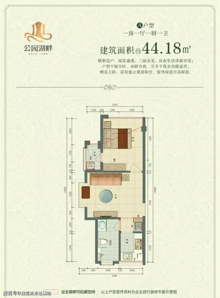 在售户型:44平米舒适一房一厅一卫