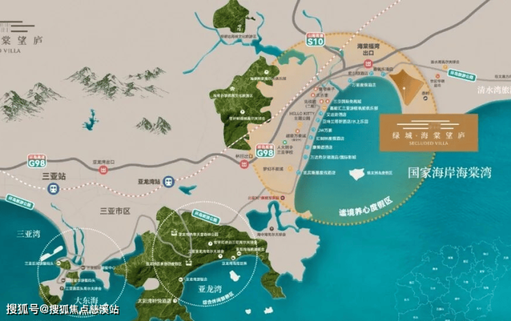 1小时度假生活圈:紧邻G98海南环岛高速,到凤凰国际机场约50公里,距离海棠湾站约10公里,1小时从容国际度假