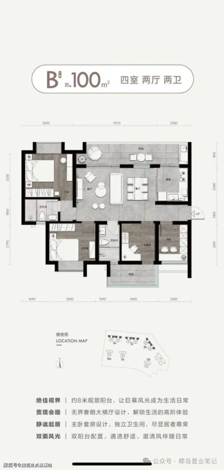 9.【三亚绝版 极致稀缺】82㎡三房,99㎡四房,超高得房率,270度观景面,观山阅景,尽显从容。二梯四户,纯板式通透式设计,户型方正,全屋品牌精装,尽享三亚生活。