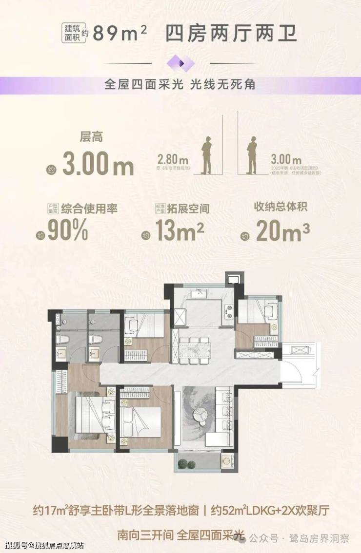 王牌:超高得房率 (高层85-90%,洋房97-98%)。