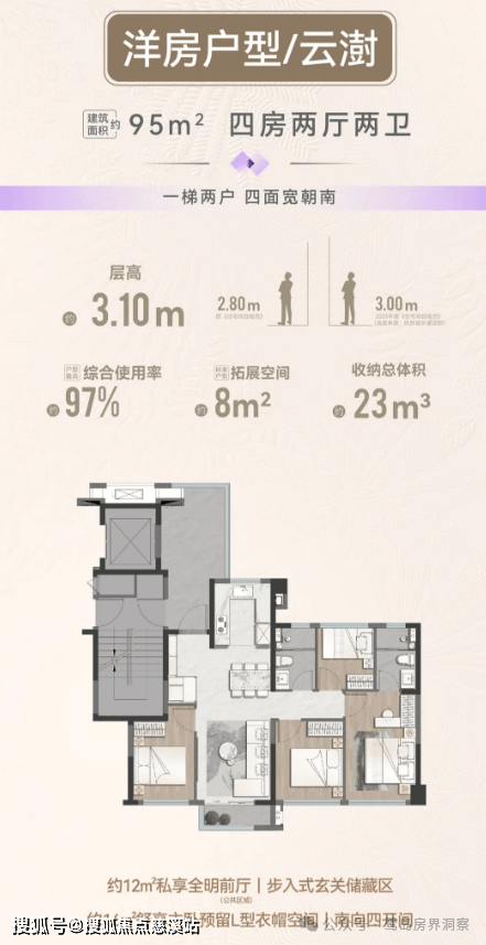 - 洋房:得房率高达97%-98%,几乎没有浪费面积。