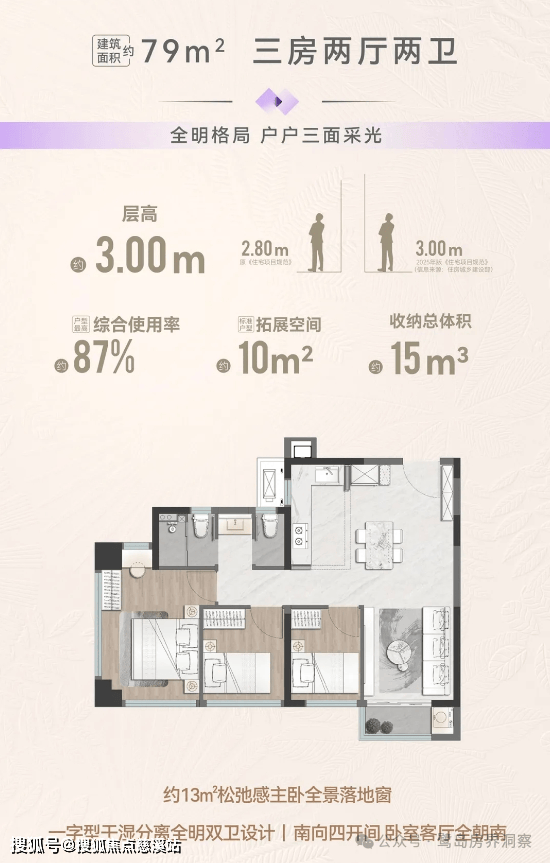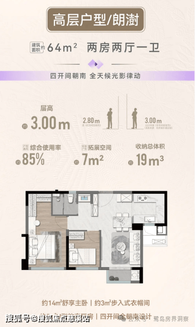 - 高层:64㎡两房、75/79㎡三房、89㎡四房。