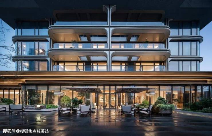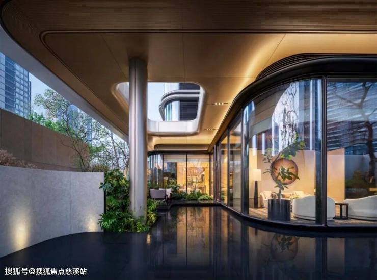 南向水晶灰全玻璃幕搭配铝板线条,凭借0.41的黄金窗墙比营造通透灵动的空间意境,既符合国际高端审美,又让室内采光实现最大化,充足自然光与室内安缦风精装意境相融,让静谧雅奢的居住意境自然流露。