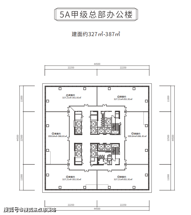 5A甲级总部办公楼:建面约327-387㎡