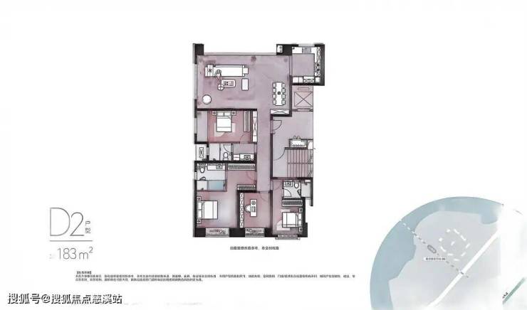 •主打100㎡ -131㎡-143㎡-183㎡-201㎡刚需改善至高端改善型三至四房户型;100㎡为3室2厅1卫,131㎡为3室2厅2卫;143㎡和183㎡为4室户型,其中183㎡户型带独立玄关,13米宽巨幕观景厅搭配270°环幕视野,部分户型采用LDK一体化设计,主卧套房面积超30㎡,还配备独立浴缸及双盥洗系统,可观赏湖海双景;