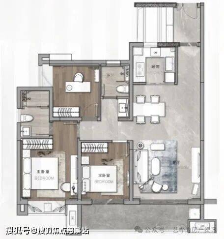规划两房、三房,保证空间尺度的基础上,仍有不同的布局设计选项。