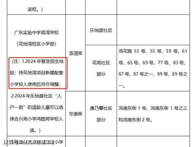 当然,今年省实的招生表上有个注明:“2024年暂定招生地段;待花地湾项目新建配套小学投入使用后另作调整”,即今年暂定这样,之后可能会有变动,所以具体还是要以当年的教育局招生计划为准。
