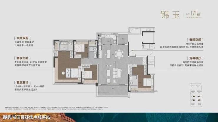 产品涵盖建面约108-171㎡,全四房,30%阳台率,户型使用率超100%。