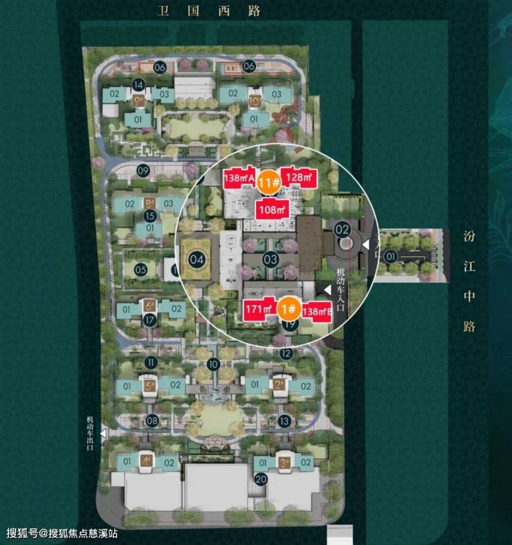 首开楼栋为1栋、11栋,其中1栋涵盖建面约138㎡B、171㎡户型,11栋为建面约108㎡、128㎡、138㎡A户型。
