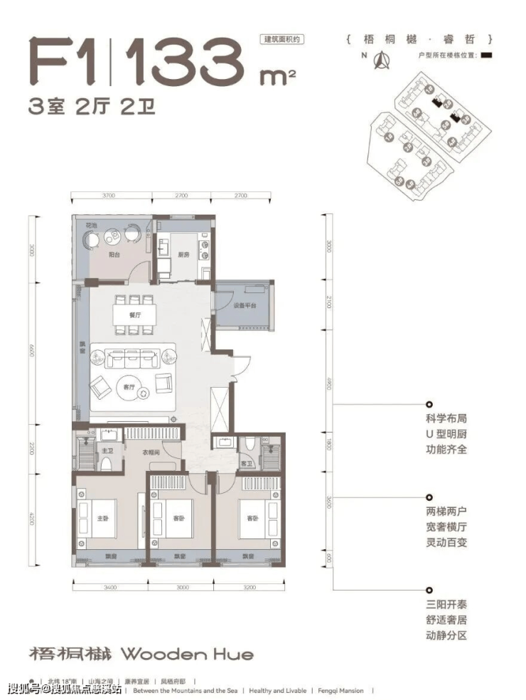 建面约108-142m三房/四房,慢享山海之间宜居康养度假生活,室内空间由HPID堂朝天意高端设计。
