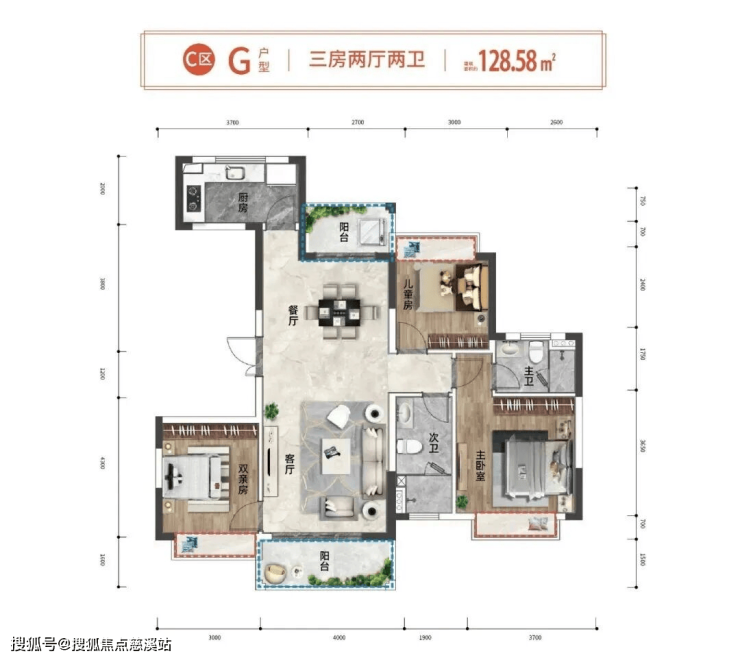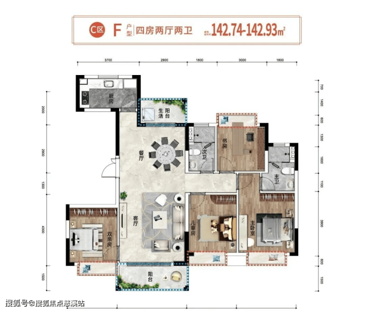 户型设计是项目的一大亮点,主要有101-143㎡的户型,主打户型方正、动静分离、采光充足的三居和四居。