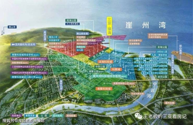 有别于其他湾区,崖州湾不再以传统旅游度假为主,而是要实现三亚产业转型升级,被海南政府定义为海南自由贸易建设的先行引领区。总规划面积26.1平方公里,由“深海科技城、南繁科技城、大学城、全球动植物种质资源中转基地和南山港”五部分构成,作为我省12个先导性项目之一,将以“国际标准、世界眼光、高点定位、三亚特色”为构架,打造开放创新、陆海统筹、产业繁荣、文化自信、绿色节能的先导科技新城。