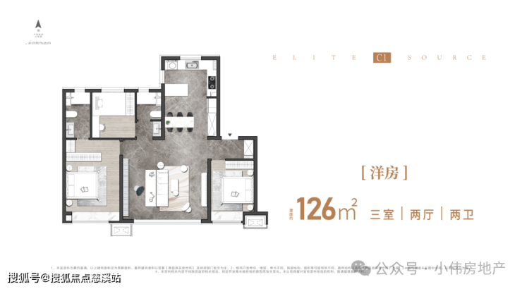 🔥C户型|洋房126㎡博雅三室两厅两卫: