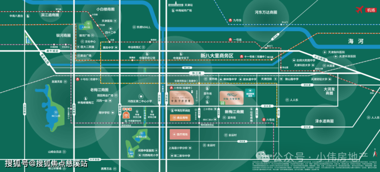 🟥医疗保驾护航:3公里范围内:南开大学附属医院、天津市第四医院、河西中医院;10公里范围内:天津市天津医科大学第二医院、天津医院、环湖医院、解放军464医院、肿瘤医院、海河医院6所三甲医院;1公里范围内:距离新梅江板块规划的三甲医院不足1000米,为家人健康保驾护航。