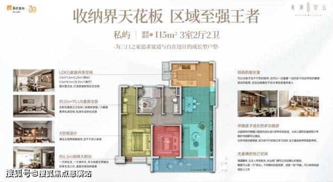 115平三房,玄关S墙增加收纳,LDKG增加互动,主卧套房,紧挨客厅的次卧是百变X空间;